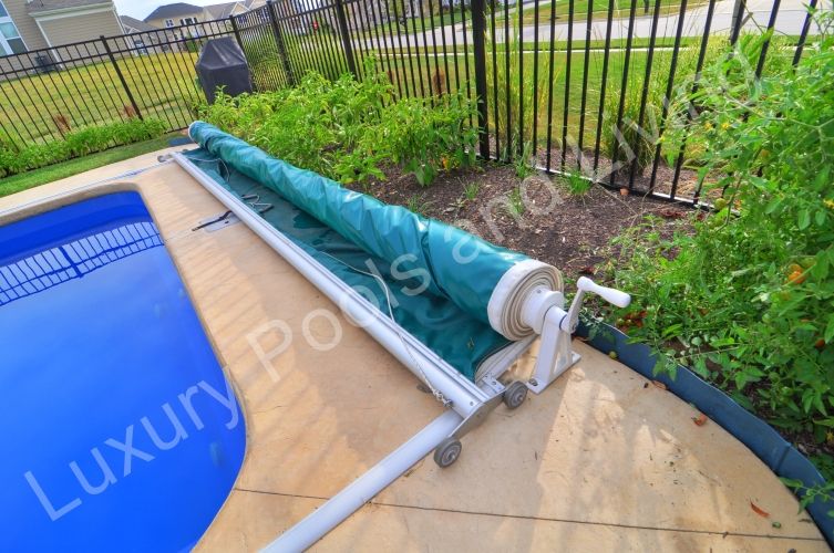 Equal in safety, the manual cover offers a less expensive way to gain the same benefits. Typically on a top track system, a manual cover has all the same track, fabric, sliders, and rollers that a power cover has, but it has a reel on the back side that you manually crank to open the cover.